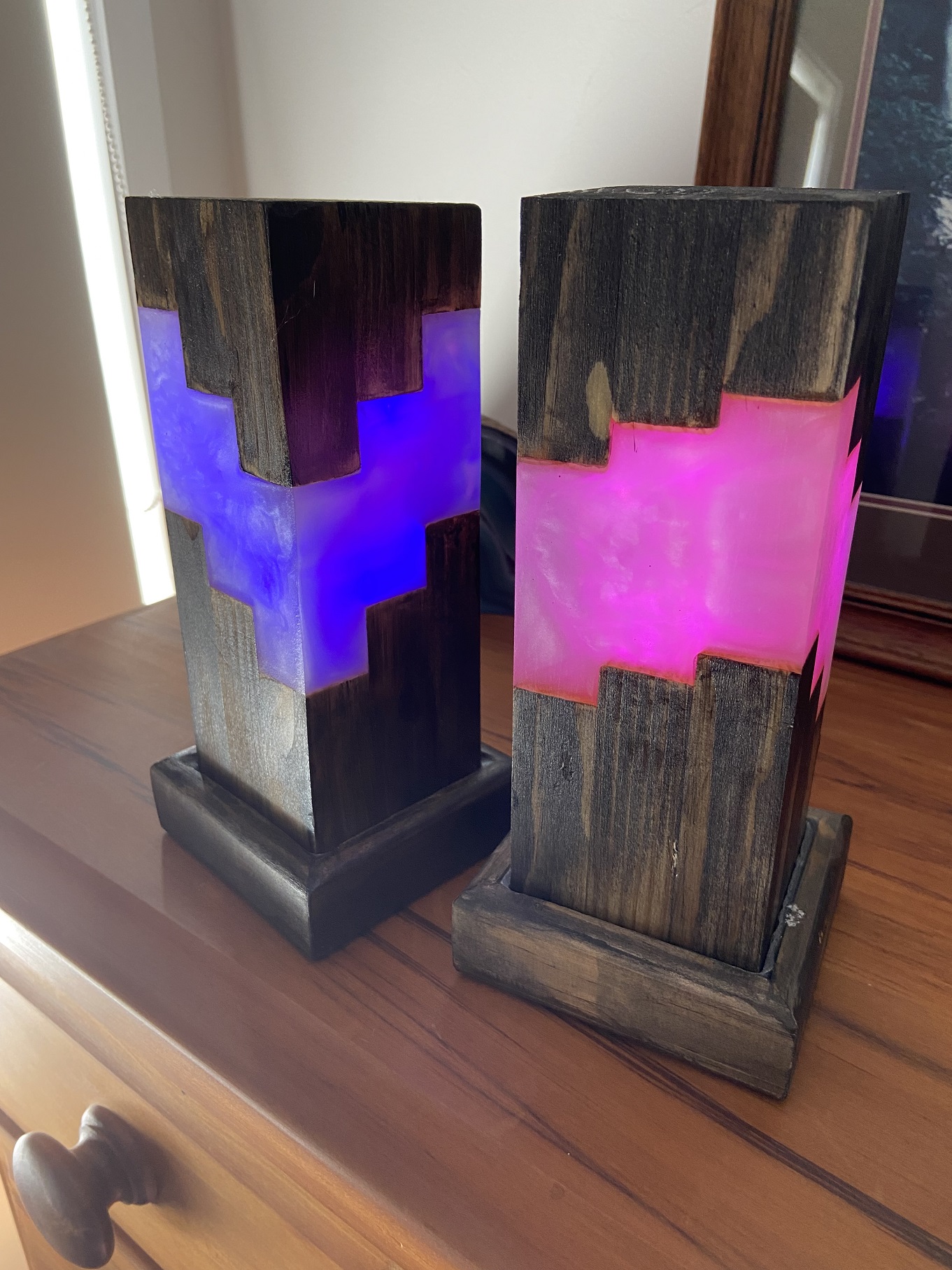 Elegant block light of wood and resin for that perfect gender reveal – light can be used as a night light for years to come.