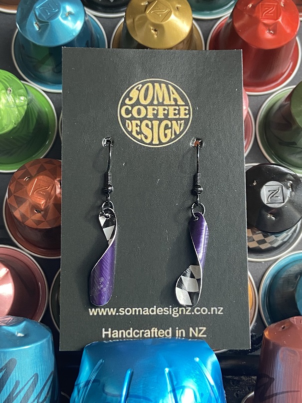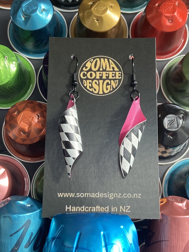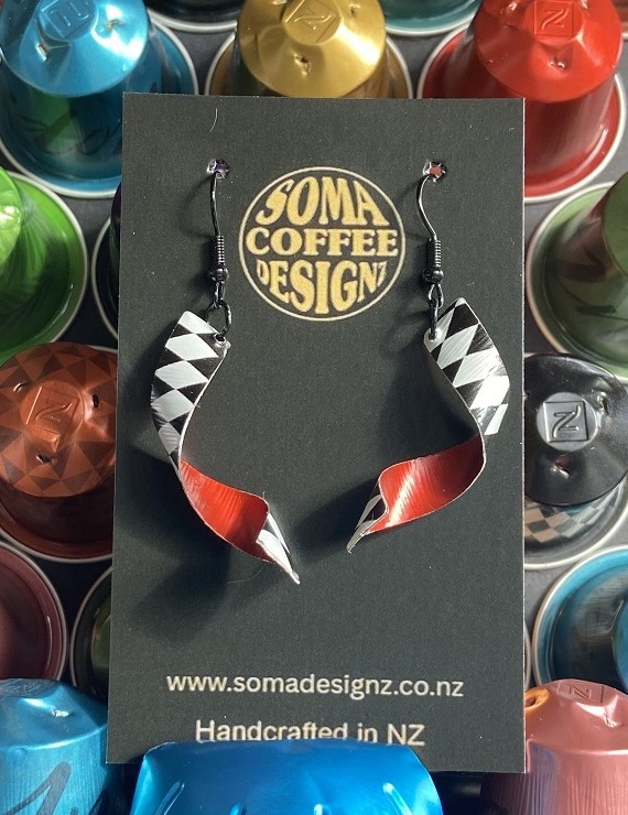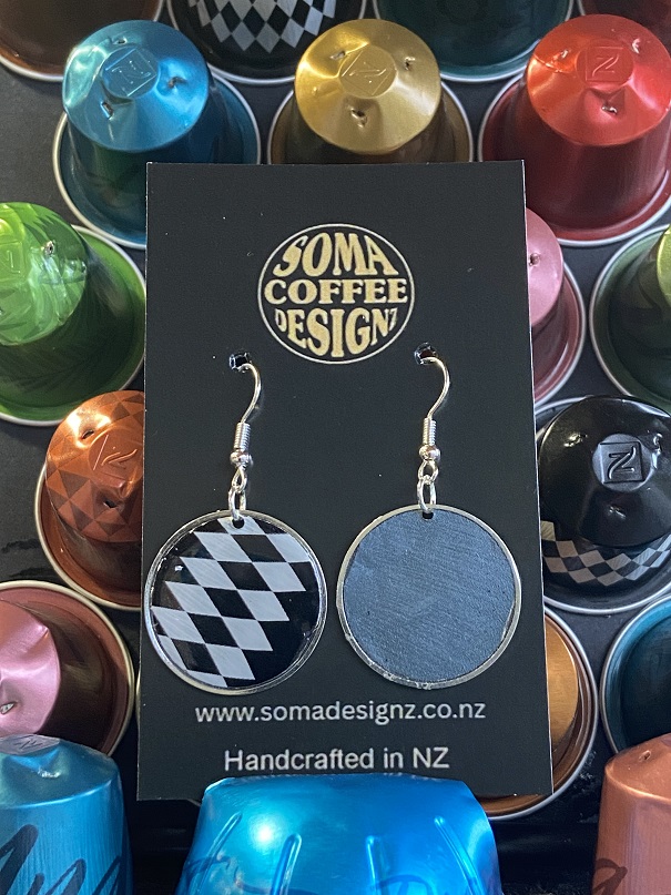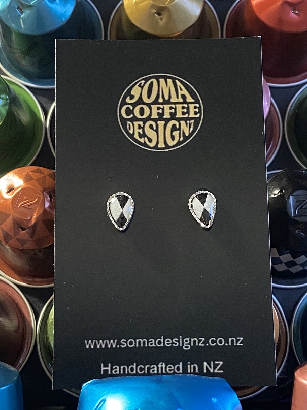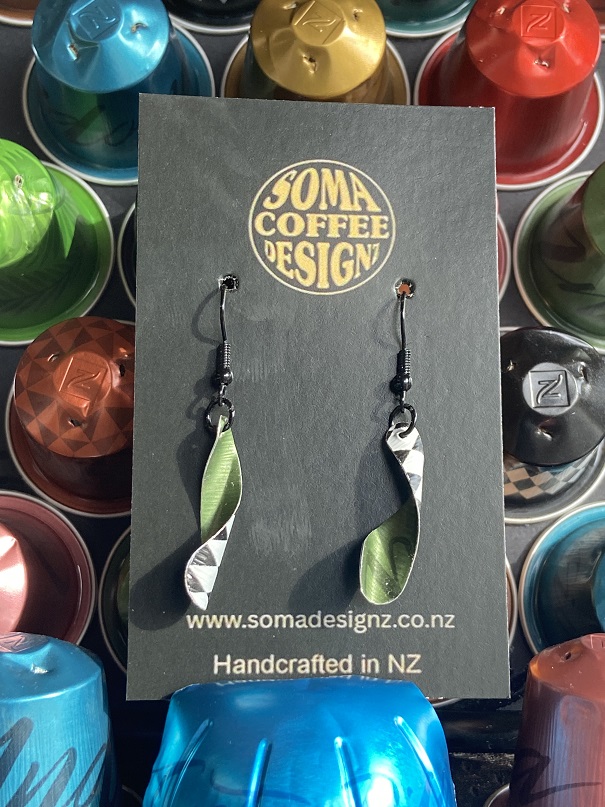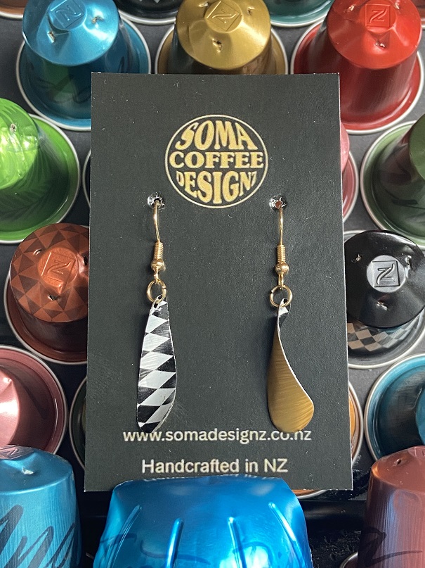 Unique earrings made from recycled aluminium coffee pods.