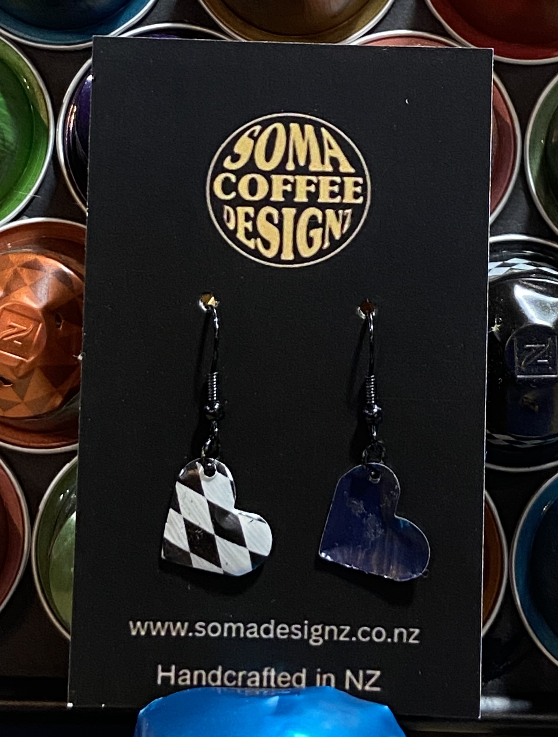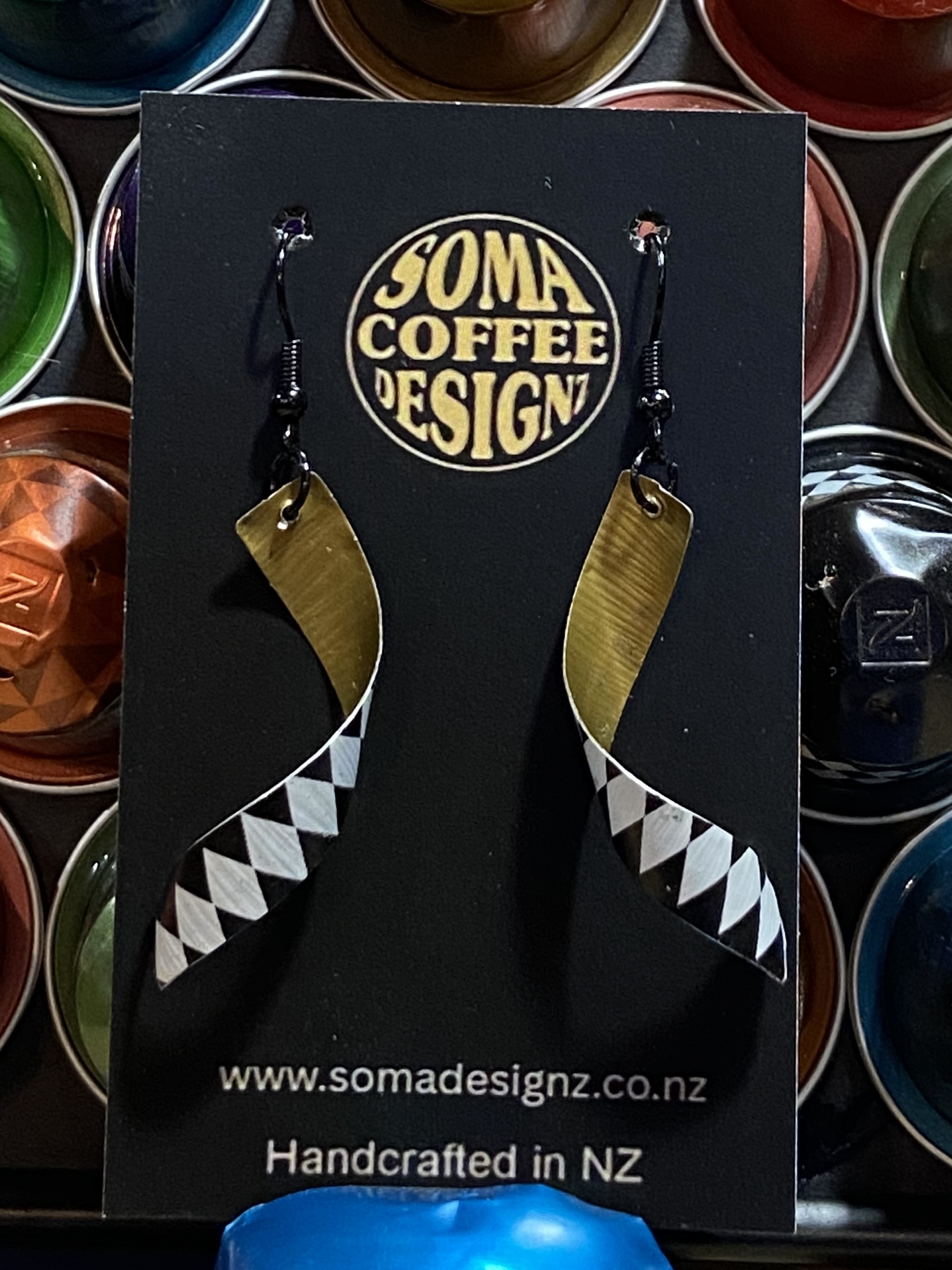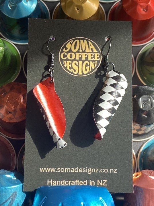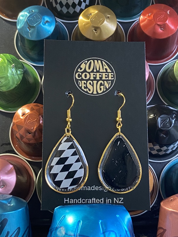 Unique earrings made from recycled aluminium coffee pods.