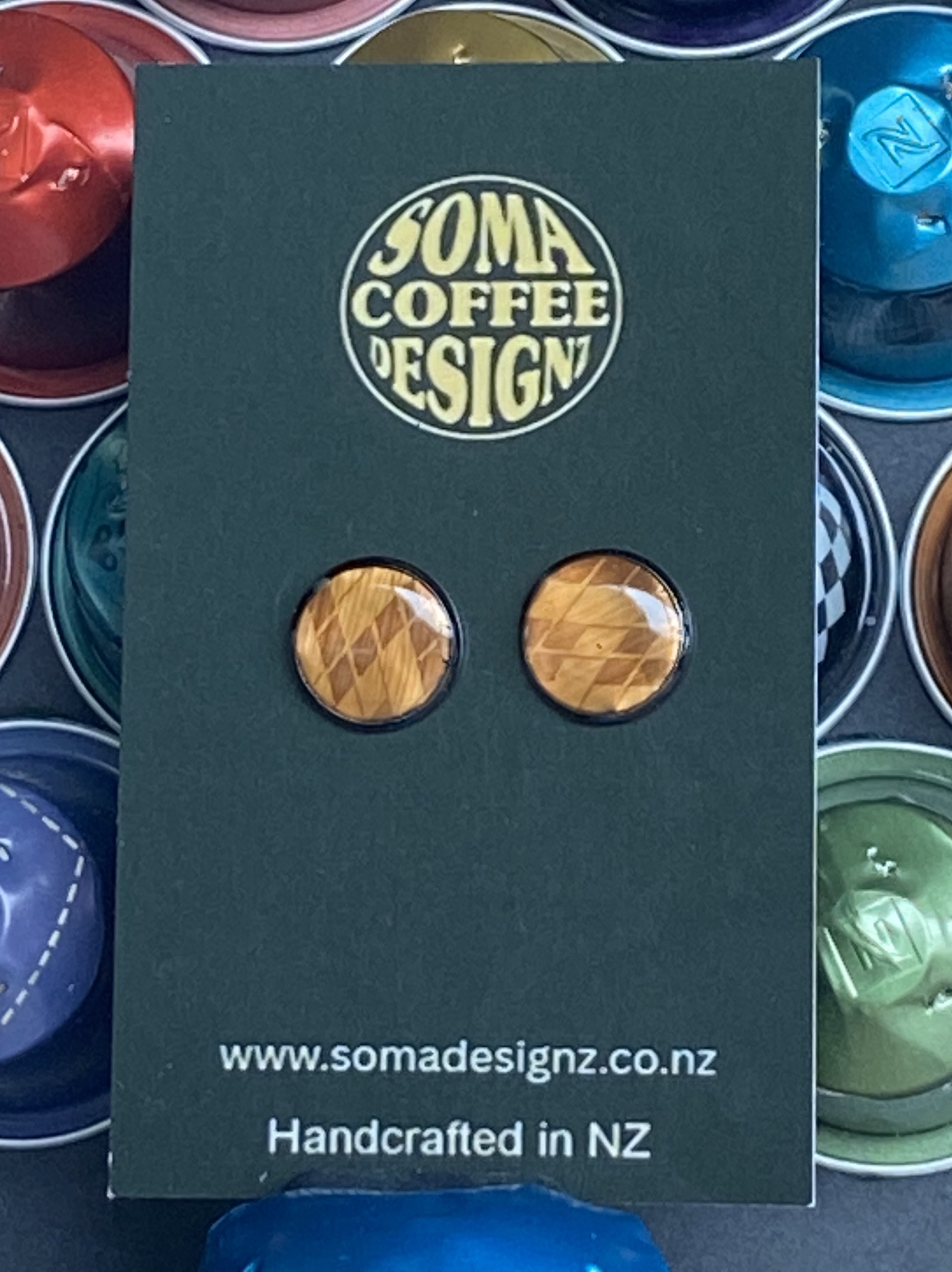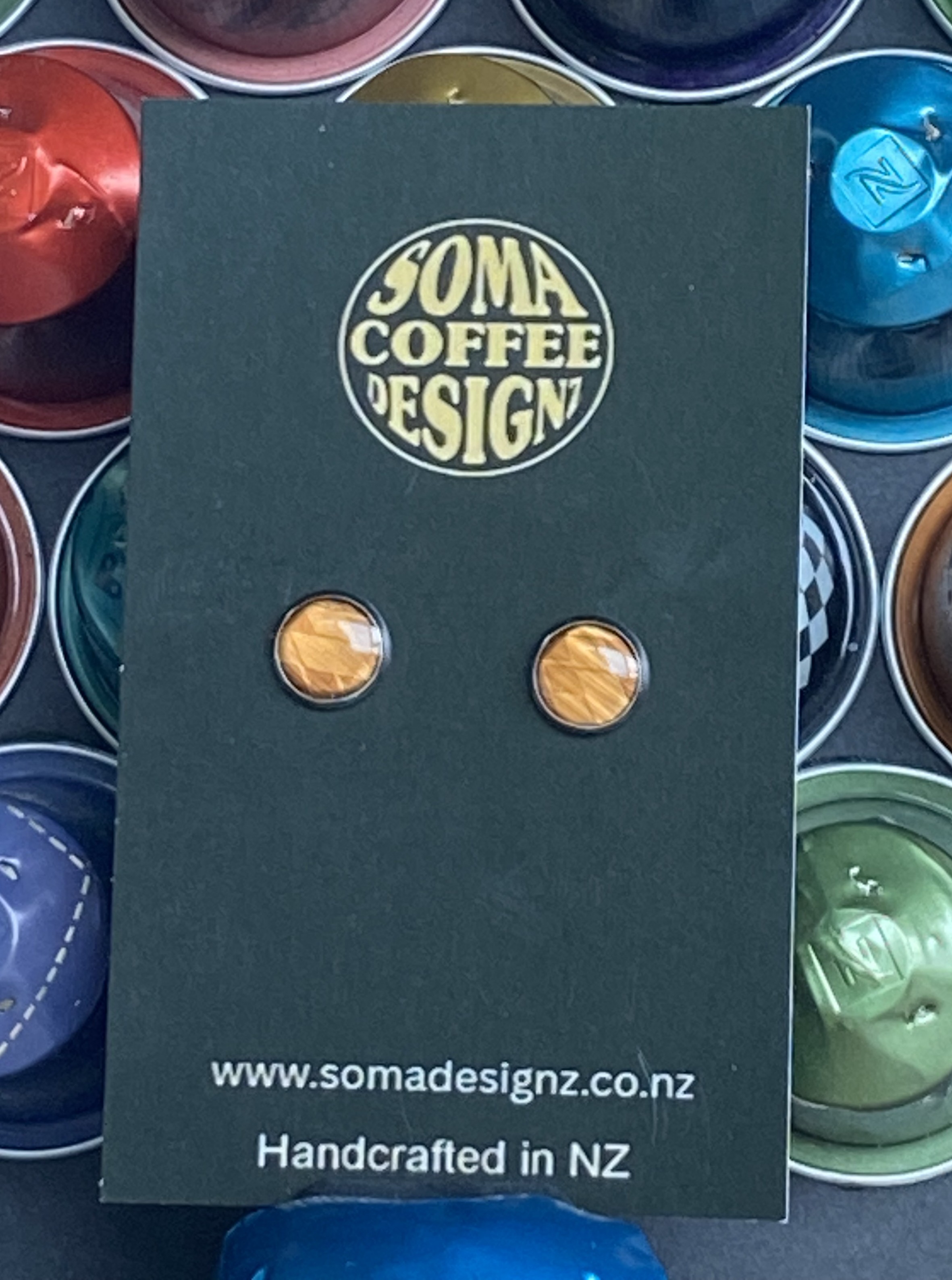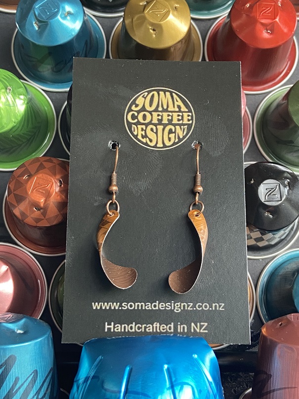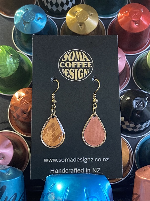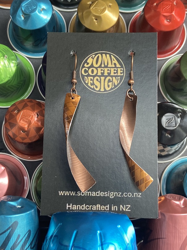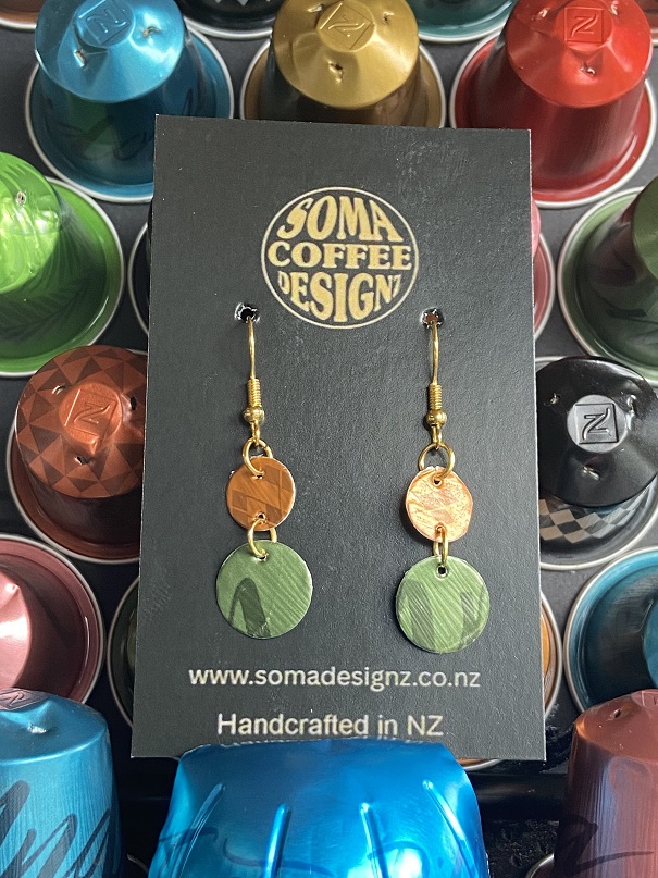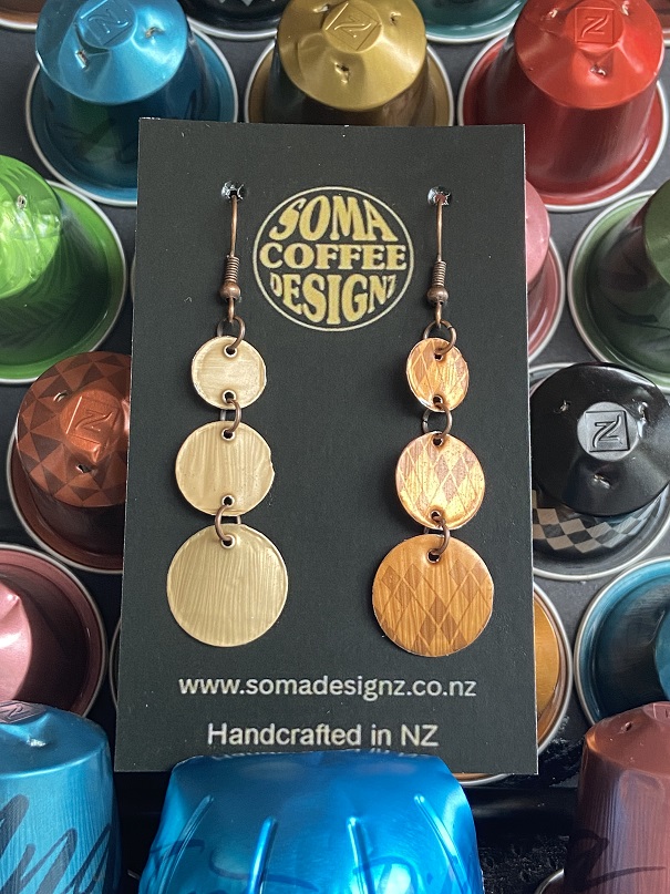 Unique earrings made from recycled aluminium coffee pods.
