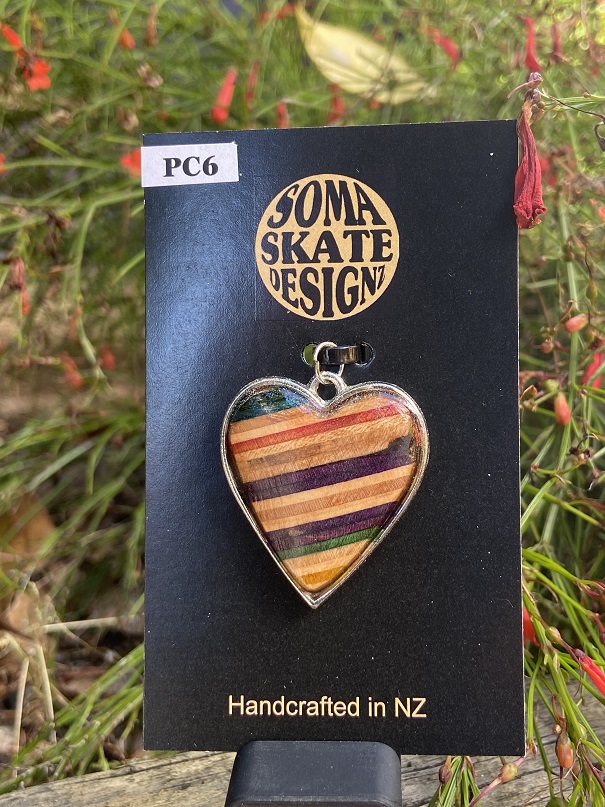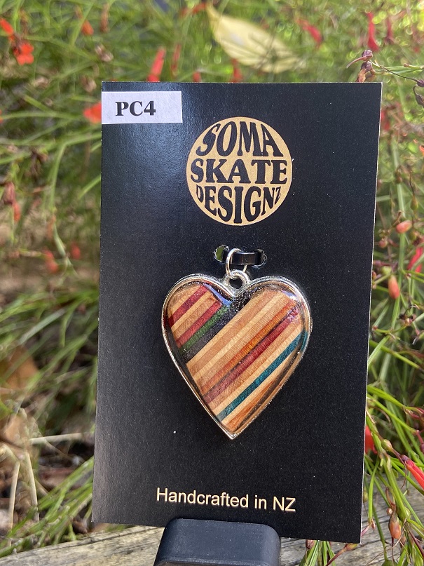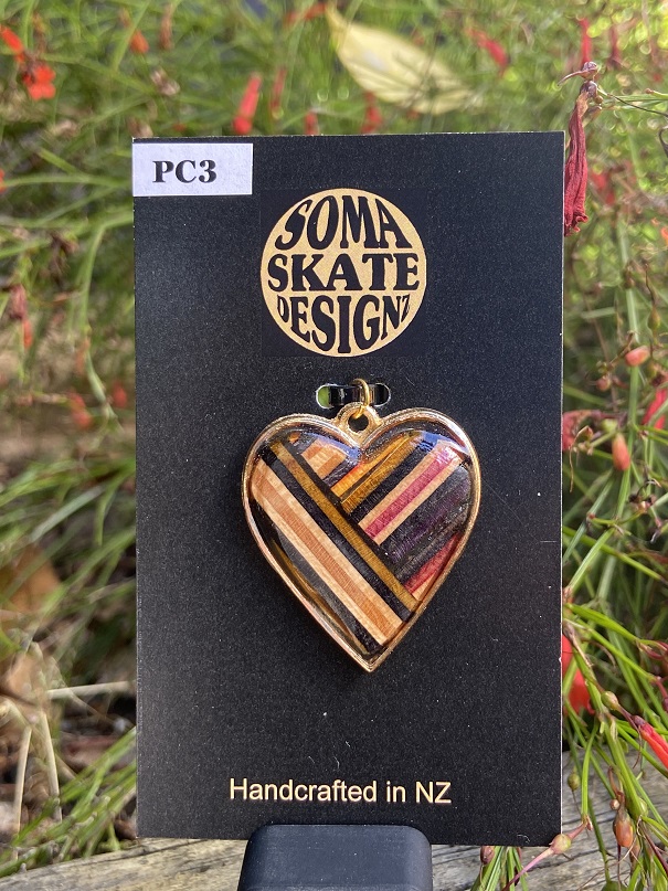 Unique cresent shaped pendants from broken skateboards – hand made in NZ.