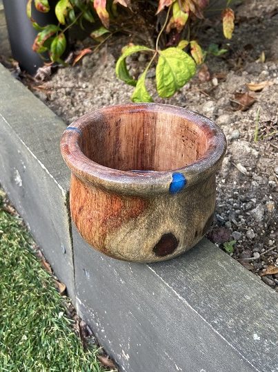 small Wood and blue Resin Bowl.