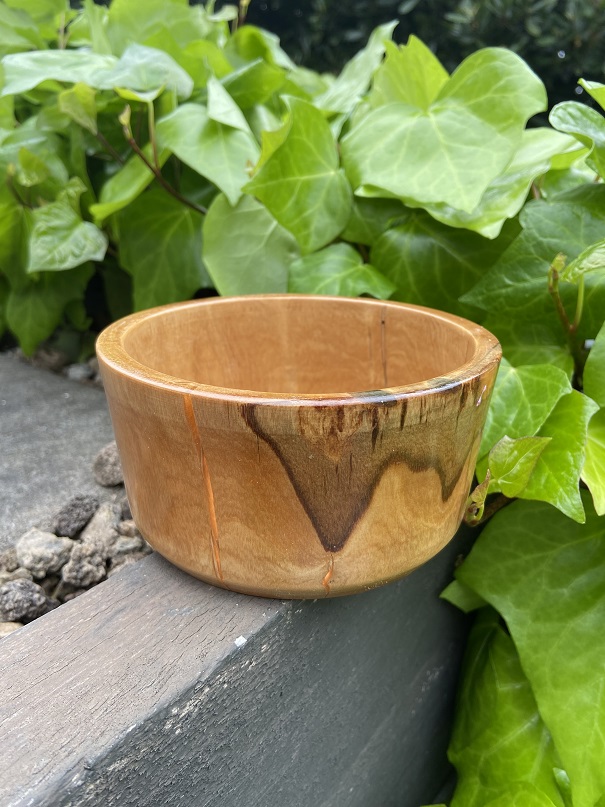 Bowl crafted from a discarded branch with gold resin highlights – some bark is retained where possible.