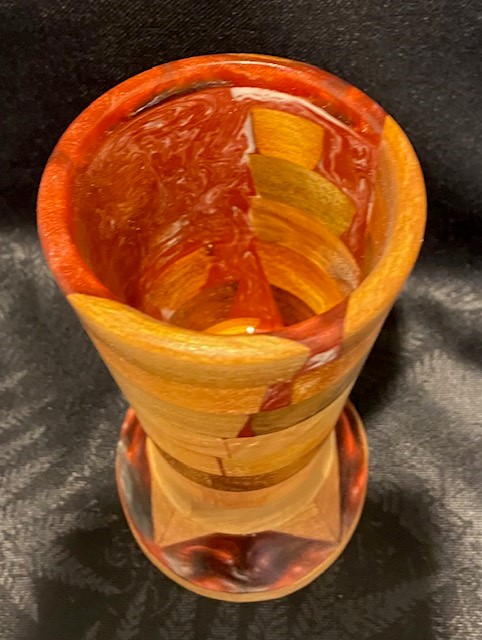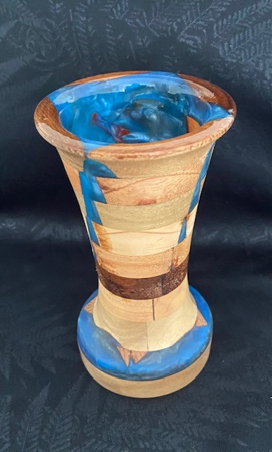 Vase crafted from wood and resin