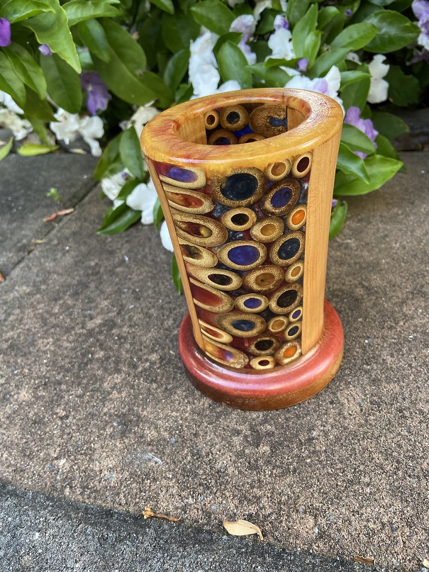 Bamboo, Wood & Coloured Resin Vase.