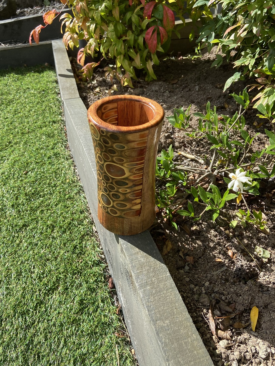 Bring a unique, sustainable edge to your home with this handcrafted vase made from bamboo, wood and coloured resin. The contrasting colours in the resin against the wood & bamboo give a unique and distinctive work of art.